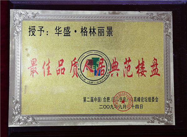 2009年荣获最佳品质人居典范楼盘(华盛·格林丽景)