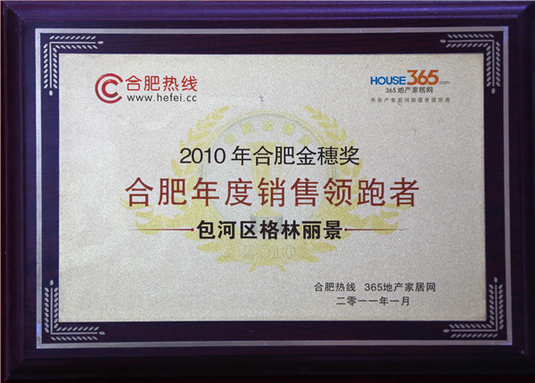 2010年度合肥金穗奖包河区销售领跑者(华盛格林丽景)