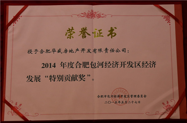 2014年度包河区经济开发区经济发展“特别贡献奖”