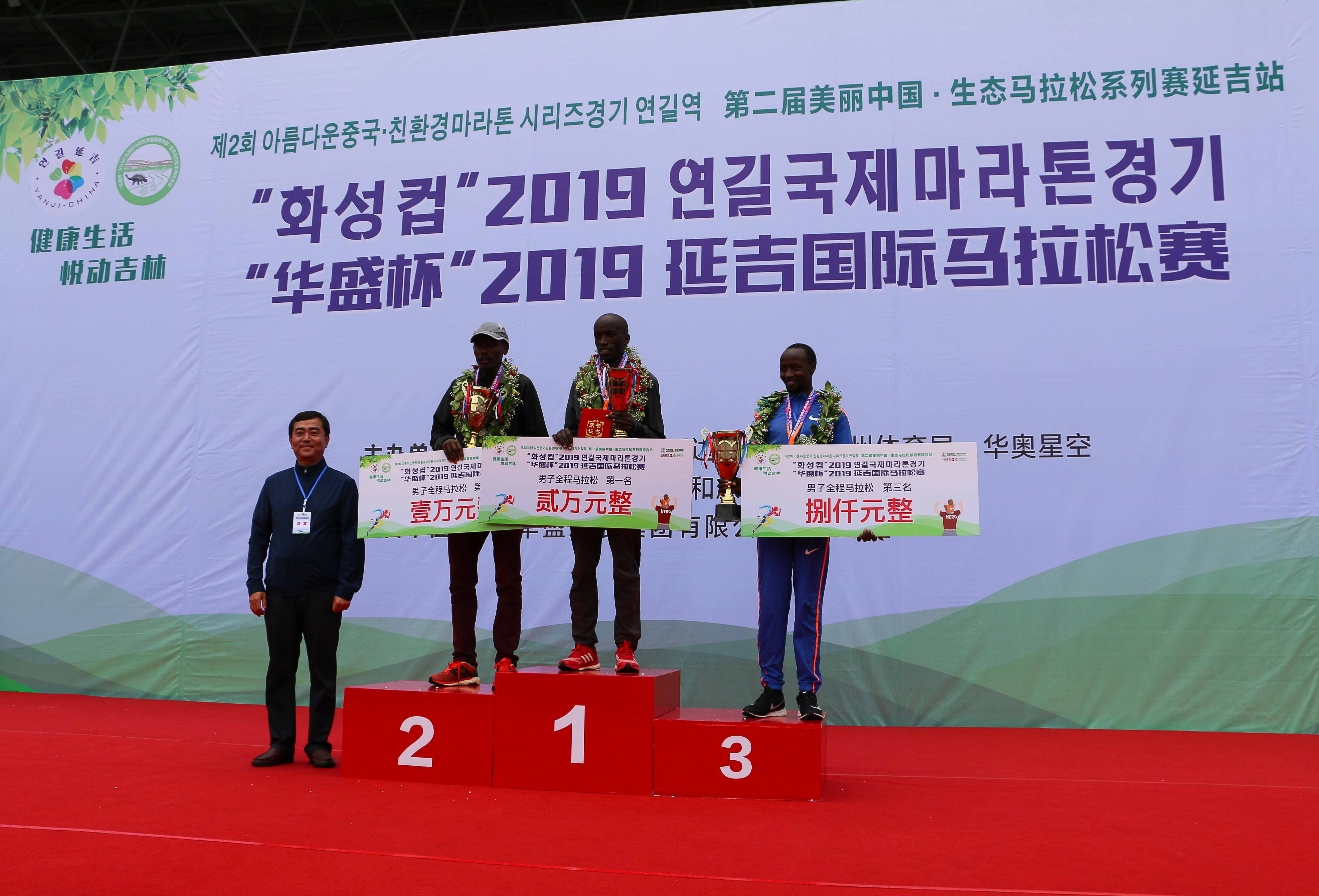 (“华盛杯”2019延吉国际马拉松赛男子全程马拉松获奖选手)