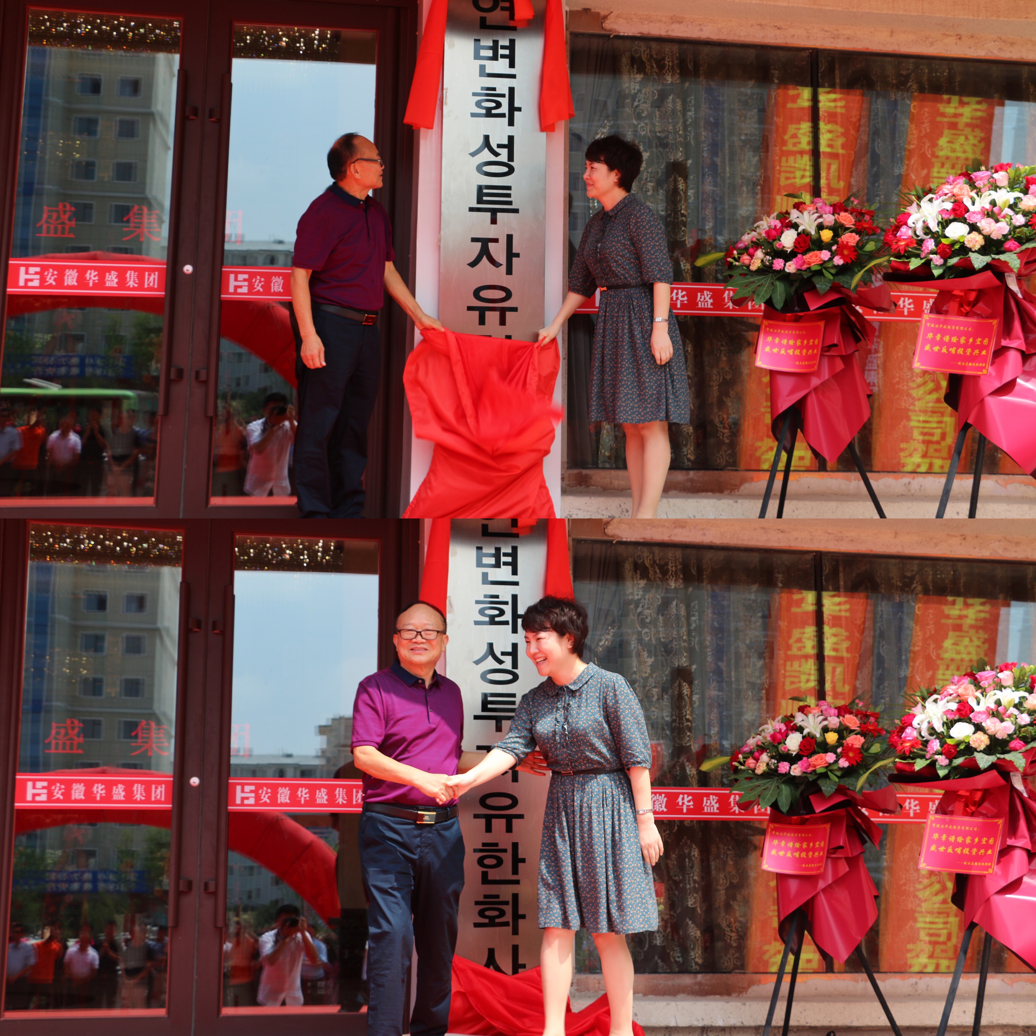 (安徽华盛发展集团王汝仙董事长和延吉市常务副书记尹朝晖进行揭牌)