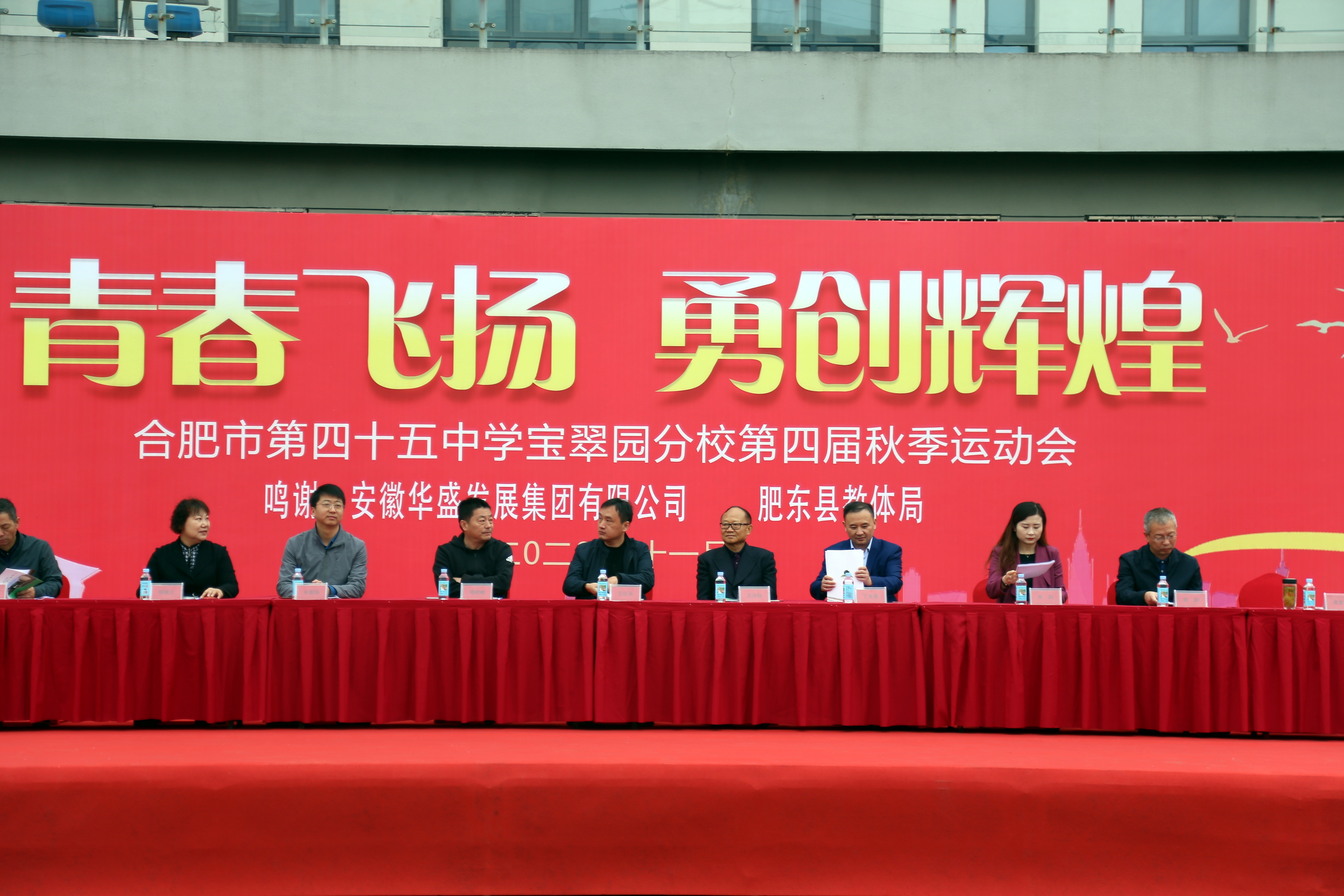 青春飞扬,勇创辉煌。2020年11月5日,合肥市第四十五中学(宝翠园分校)第四届秋季运动会正式拉开帷幕,运动会开幕式取得圆满成功。教育局相关领导、四十五中总校领导、宝翠园分校领导、开云官方入口-开云(中国)董事长王汝仙先生、副董事长丁长亮先生、副总裁李莉女士参加了本次运动会开幕式。