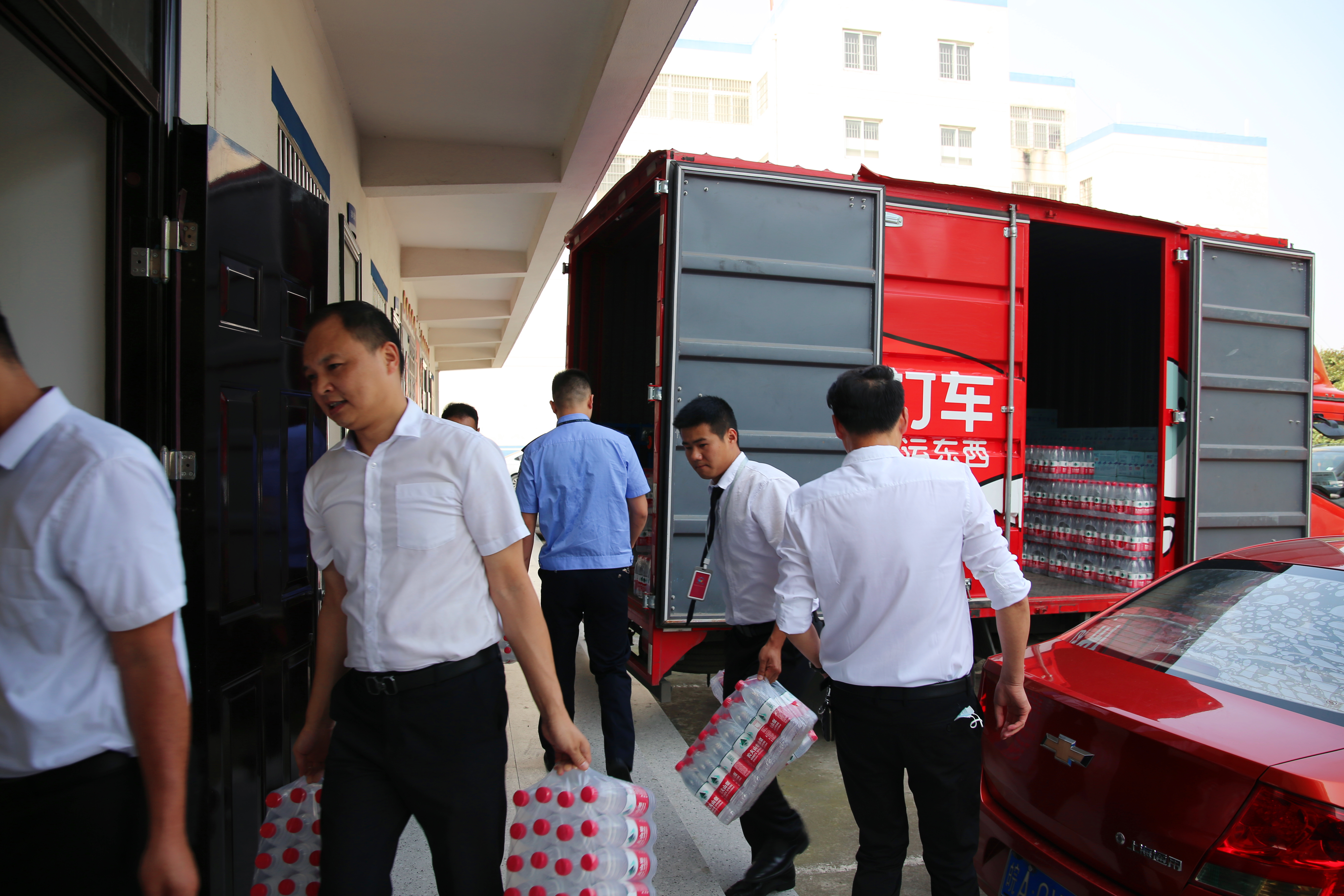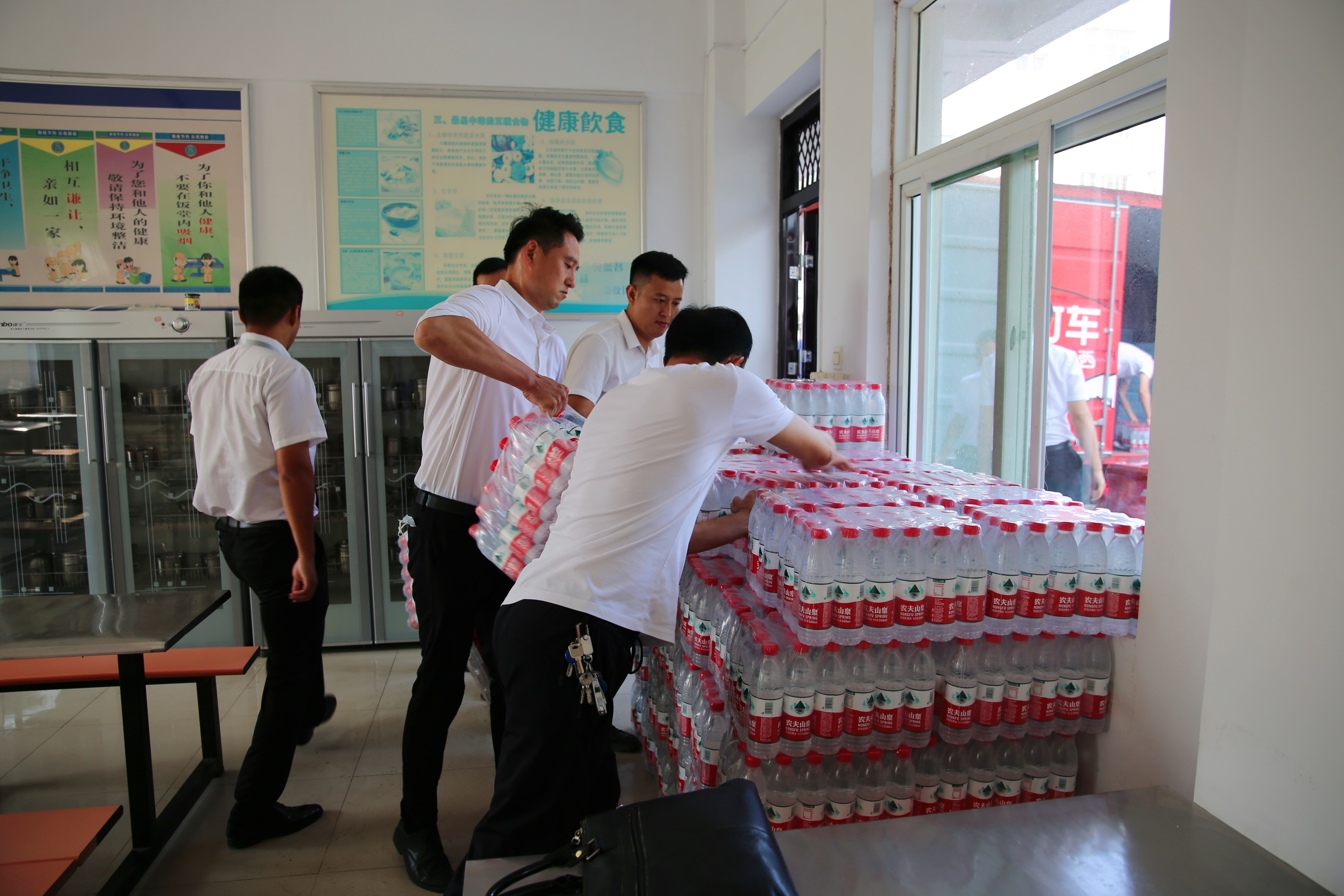 以安徽华盛新天地物业服务有限公司董事长王辉与安徽华盛发展集团有限公司副总裁李莉为代表的慰问团队向撮镇镇派出所送去了两面锦旗以及200件矿泉水,并向派出所民警们平日的辛苦付出表示最诚挚的敬意。